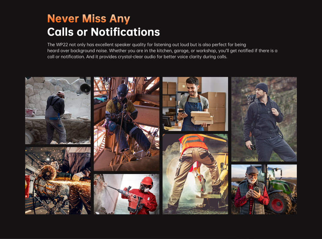To keep up with your demanding lifestyle, the WP22 features a long-lasting battery that provides ample power for extended usage. Whether you're exploring the outdoors or working on-the-go, you can rely on the WP22 to keep you connected and powered up throughout the day.